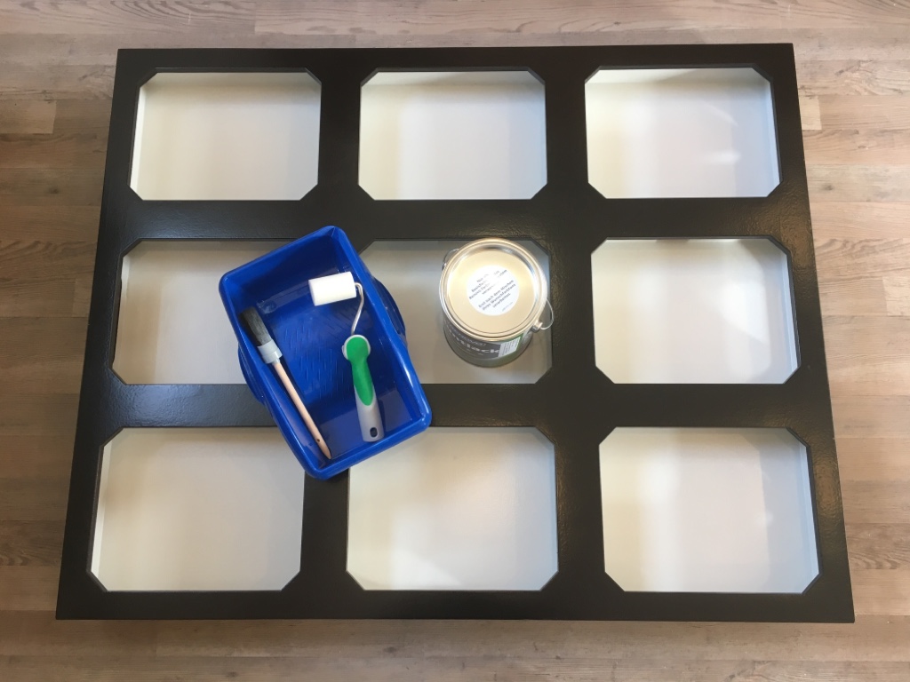 Der zweite Außenanstrich der Segmente folgt. Als Farbton habe ich – wie beim ersten Außenanstrich – RAL 8022 (schwarzbraun) von hiesigen Baumarkt (Hagebau) verwendet.