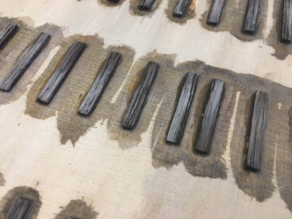 nachdem der Holzleim durchgetrocknet ist, werden die Schwellen nun auf alt getrimmt.