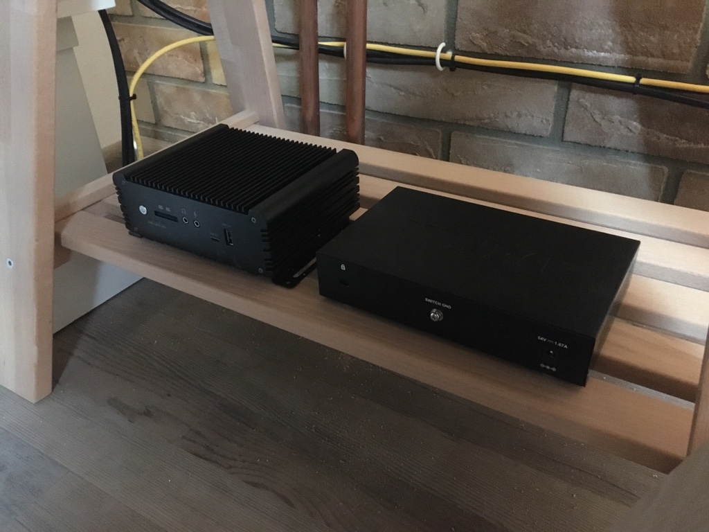 Der rocRAIL Server hat nun auch seinen Platz unter der Anlage gefunden. Daneben steht ein PoE-Switch, der die vier Raumkameras (siehe Remote Betrieb – Stand 03.10.2021) mit dem notwendigen Strom und Signalen versorgt.